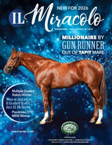 “We are excited to announce IL MIRACOLO at Crestwood Farm.  Having a son of GUN RUNNER who was a precocious maiden winner at the age of 2, and went on to win graded stakes at the age of 3 and 4, shows the durability and the quality racehorse IL MIRACOLO was throughout his career.  IL MIRACOLO displayed ability against some of the best of his generation, and he possesses a strong physical presence with size, substance and presence that we believe will impress breeders.”